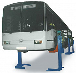 г/п. 24 тонны. Стационарный. Шестистоечный. Электромеханический привод червячный через редуктор с концевыми выключателями нажимного действия, ограничивающими ход каретки и многоуровневой системой безопасности. Предназначен для подъёма автобусов и троллейбусов сцепок, подхват за поддомкратные площадки. По отдельному заказу комплектуется установочными рамами. Поставляется в 2 вариантах Стандарт (в помещение) и ТЗ (Для эксплуатации на улице).