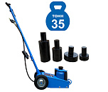 Пневмогидравлический домкрат Г/П - 35 тонн. Мобильный. Закаленный шток цилиндра обеспечивает надежность работы. 4 возвратные пружины для быстрого опускания домкрата. Разъем для подключения пневмосети. Клапан для быстрого опускания домкрата. Фиксатор угла наклона рукоятки. Угол наклона рукоятки 0-90грд. Удобная ручка для переноски домкрата. В комплекте 4 удлиняющих адаптера: 25 мм, 25 мм, 50 мм, 100 мм. Высота подхвата: 250-495 мм с адаптером 595 мм.