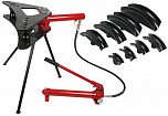 16 тонн. На подставке. Трубогиб для трубы диаметром от 1/2 до 3 дюймов (15-80 мм) с толщиной стенки трубы (2,75-4 мм). Ход поршня 230 мм. В комплекте 8 пуансонов: 1/2", 3/4", 1", 1-1/4", 1-1/2", 2", 2-1/2", 3".