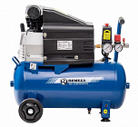 Воздушный поршневой компрессор REMEZA с ресивером 50л, производительностью 260л/мин с коаксиальным приводом, масляный, одноцилиндровый. Применяется в строительных, автосервисных и медицинских работах. Способен функционировать при перепадах напряжения (не ниже 180В). Для предотвращения перегрева оснащен термореле.