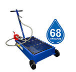 Подкатная установка для слива масла 81л, «отработки», антифризов из ДВС, КПП, мостов грузовиков, тракторов с клиренсом от 250мм. Регулировка угла наклона рукояти 0˚÷150˚. Слив из установки в бочку ручным шестерёнчатым насосом. Сетка улавливает мелкие детали и предотвращает разбрызгивание. Вес 19кг.