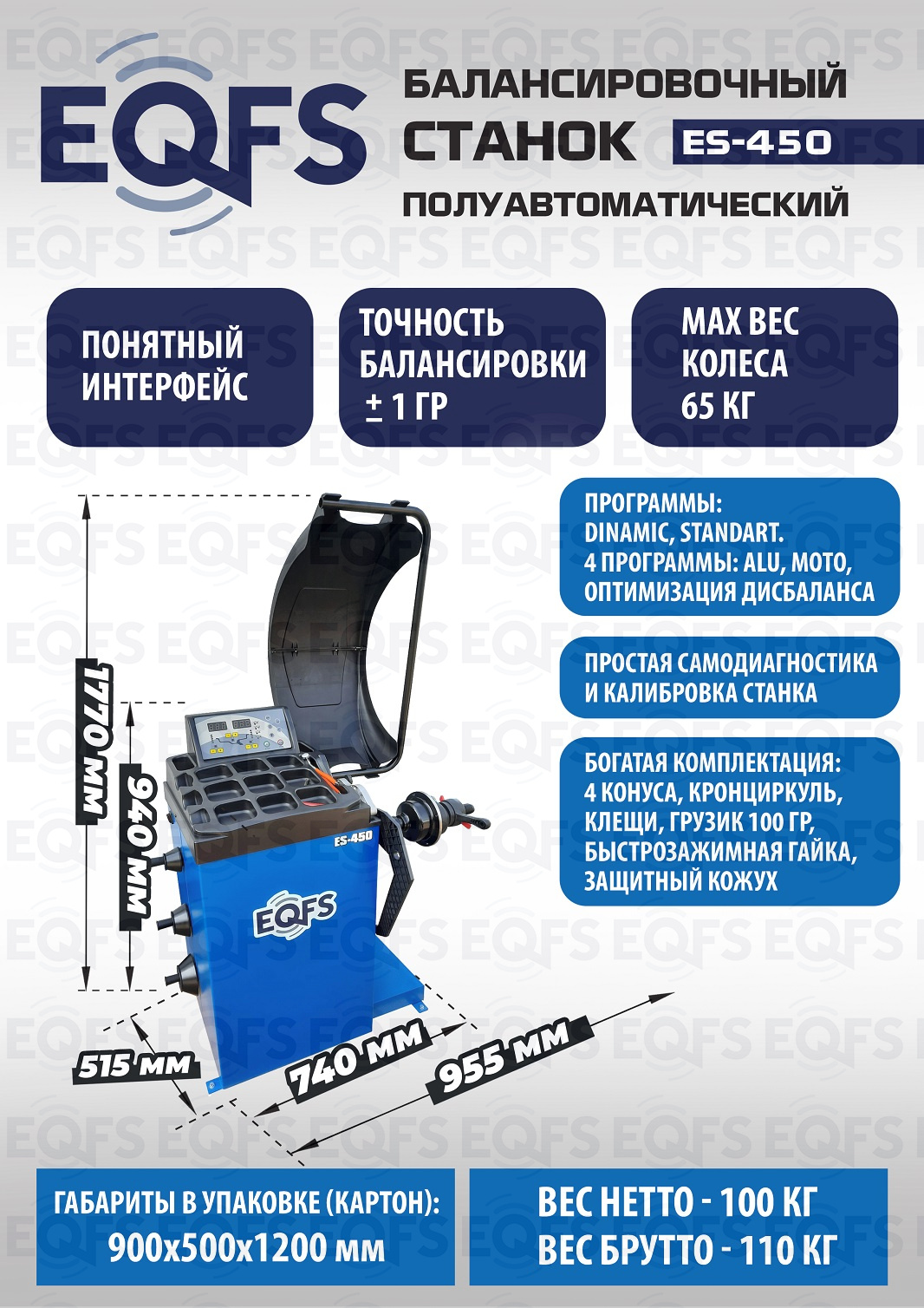 Полуавтоматический балансировочный станок для колес легковых автомобилей, мотоциклов и легких грузовиков. Автозапуск опусканием кожуха. Для колес легковых автомобилей, мотоциклов, «Газелей», «Спринтеров» и т.п. с диаметром диска с резиной до 760 мм. Размеры диска: ширина 3–10” (76-254 мм) , диаметр диска 10–24” (254÷609 мм). Вал-36 мм. Максимальный вес колеса с диском – 65кг. C кожухом. Точность ±1гр. Напряжение 220В. Режимы DINAMIC, STATIC, ALU1, ALU2, ALU3, ALUS, ST. Автокалибровка. Режим OPT. Гарантия 12 мес.