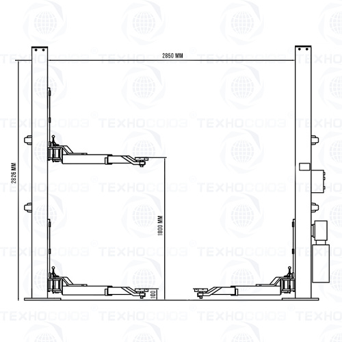 Двухстоечный подъемник с нижней синхронизацией и грузоподъемностью до 4 тонн, предназначен для подъема легковых автомобилей, внедорожников, пикапов и легких грузовиков с последующей фиксацией на рабочей высоте с целью ремонта или технического обслуживания как в небольших автомастерских, так и в крупных автосервисах. Расстояние между стойками проездное – 2550 мм. Длина задних лап: 1000-1550 мм. Длина передних лап: 750-1150 мм. Высота подъема лап (с подхватами): 1800 (2025) мм.
