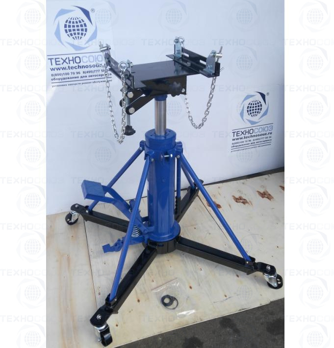 Стойка трансмиссионная гидравлическая двухступенчатая г/п 1000кг. Подъём 830÷1800мм. Оборудована страховочной цепью, для фиксации обслуживаемого агрегата.