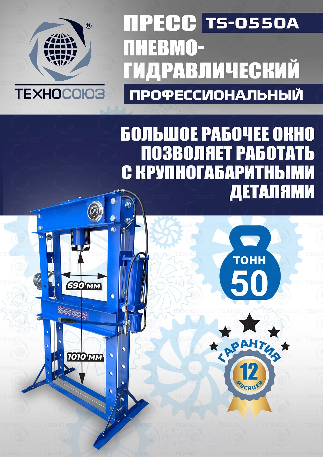 Конструктивные особенности TS-0550A Пресс 50 тонн пневмогидравлический / ручной :